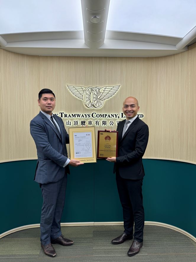 BSI企業方案及行銷總監雷子謙表示:「山頂纜車有限公司獲得ISO 45001職業安全衛生管理系統認證證明了其對確保員工和相關持份者的健康和安全的承諾﹐BSI將繼續伴隨及支持山頂纜車有限公司的發展。」
